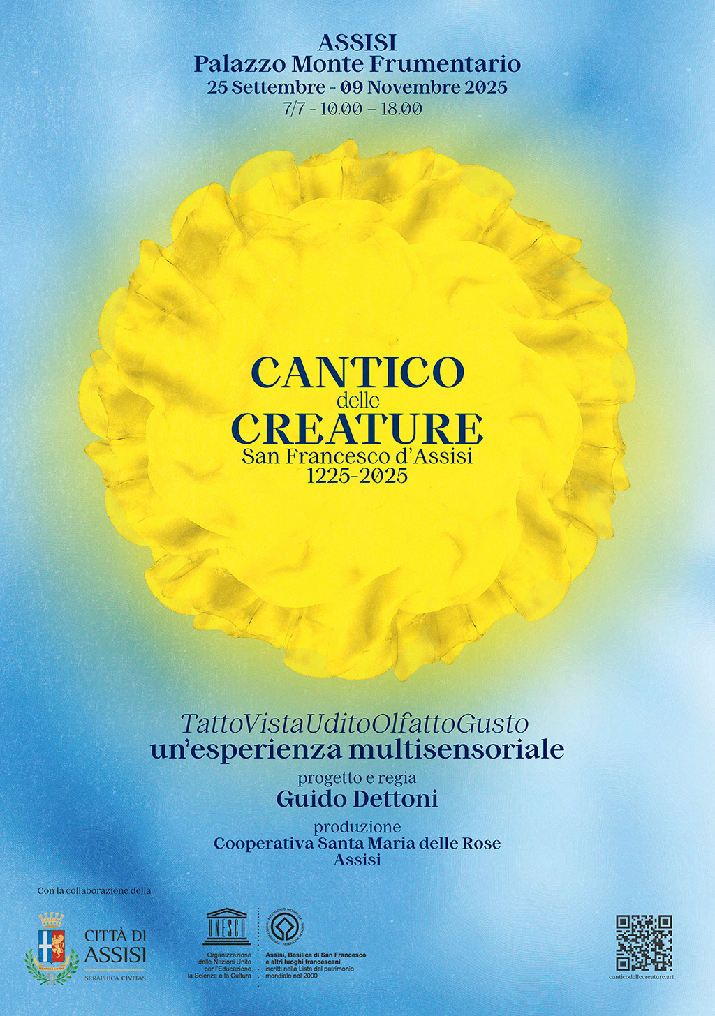 Fratello SOLE, sorella LUNA, sorelle STELLE, fratello VENTO, sorella ACQUA, fratello FUOCO, sorella TERRA e sorella MORTE, le otto composizioni digitali di Guido Dettoni accompagnate dagli otto brani di Silvia Orciari dal Cantico delle Creature.